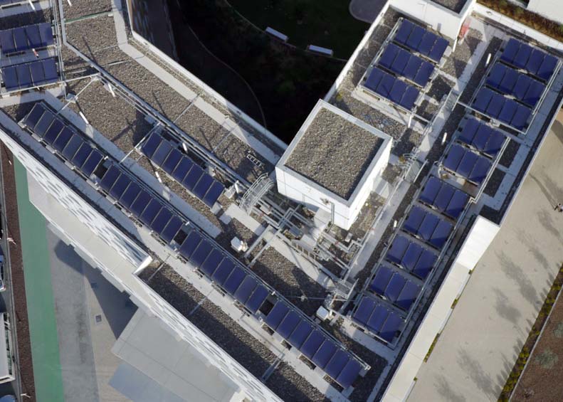 Công nghệ Solahart Drain Back được đặc biệt đưa vào thông số kỹ thuật hiệu suất để ngăn ngừa quá nhiệt vào mùa hè. Sự mong đợi của khách hàng là hệ thống cần cung cấp nước nóng tối đa trong mùa đông mà không quá nóng vào mùa hè, khi nhiệt độ khí hậu có thể vượt quá 450Cmỗi ngày. Hệ thống thiết kế kết hợp bảy phòng thiết bị với mười khu vực mái riêng biệt để lắp đặt 22 bồn chứa và tổng cộng 916 tấm thu nhiệt. Nhu cầu hàng ngày là 240.000 lít, sẽ cần khoảng 10.000 kWh điện nung nóng khi không có năng lượng mặt trời.
