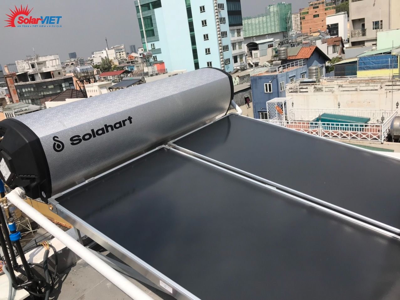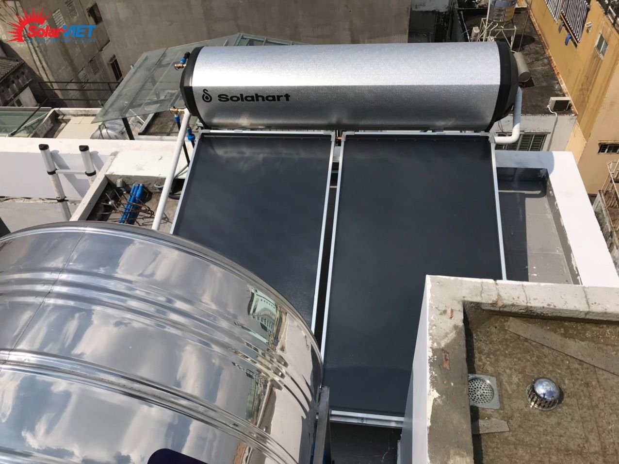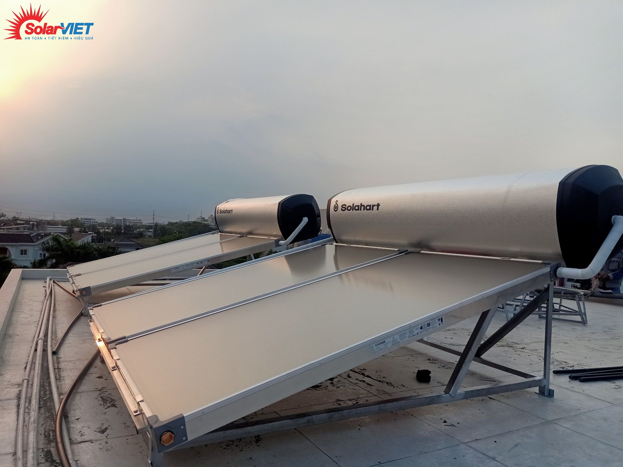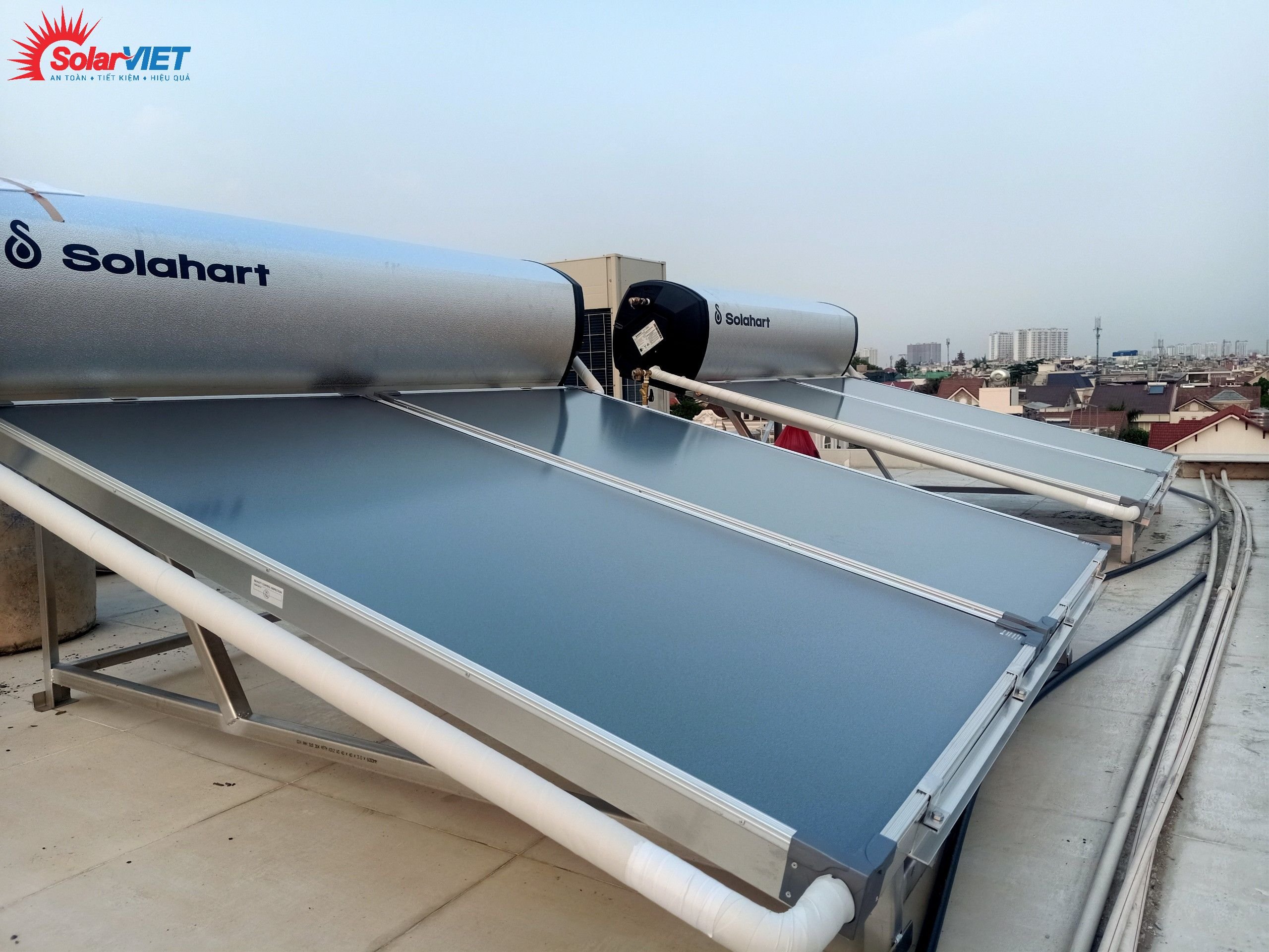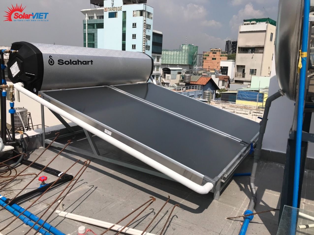 Công trình lắp 2 máy Solahart Premium 300L lắp tại Bình Tân, phù hợp cho hệ khách sạn, nhà nghỉ, resort.. máy tạo áp lực nước mạnh luôn đảm bảo nguồn nước giàn trải đều xuống cho các phòng.
