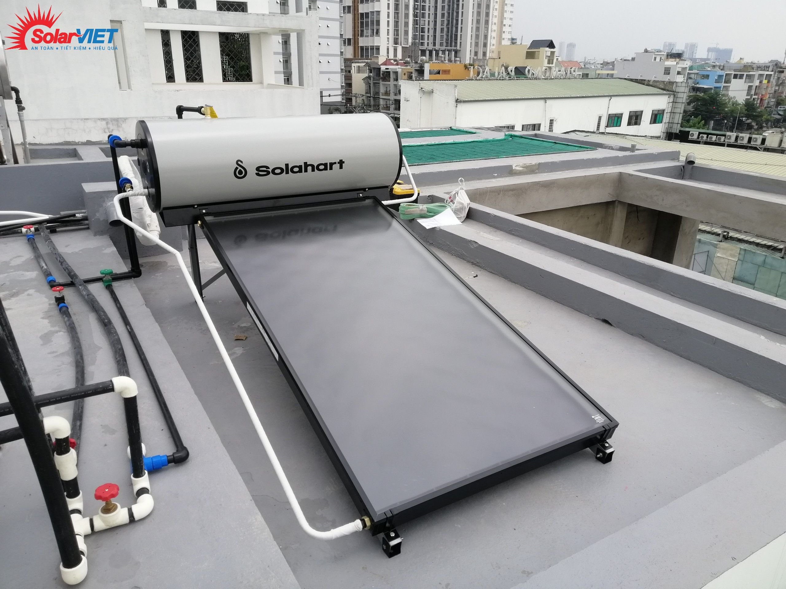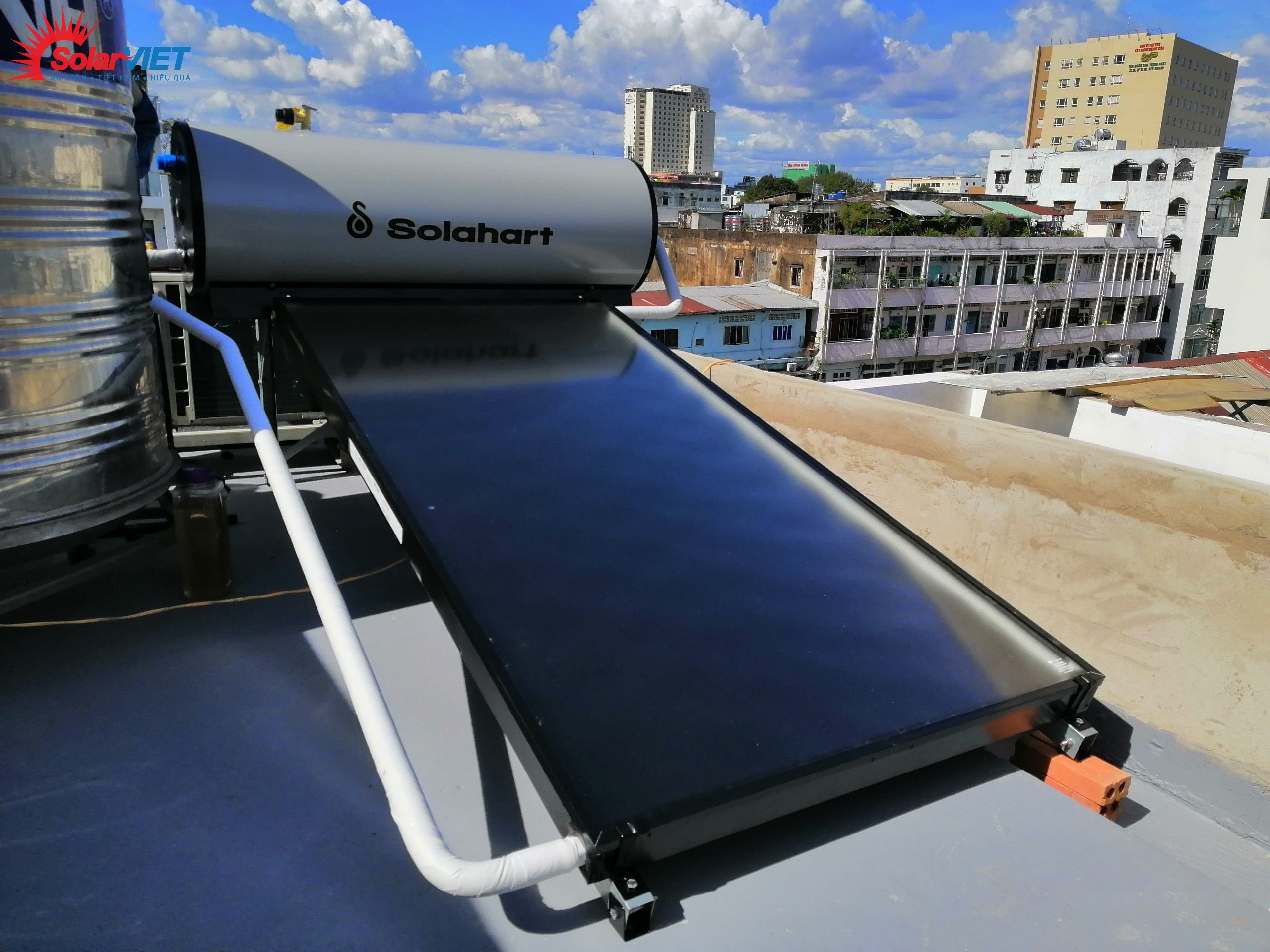 Bề mặt tấm hấp thụ nhiệt bằng nhôm sơn phủ bột Polyester màu đen hấp thụ bức xạ nhiệt của mặt trời và truyền vào nước trong 7 ống dẫn. Chất liệu đồng được sử dụng cho các ống dẫn vì tính dẫn nhiệt cao đảm bảo lượng năng lượng nhiệt tối đa được truyền vào nước.