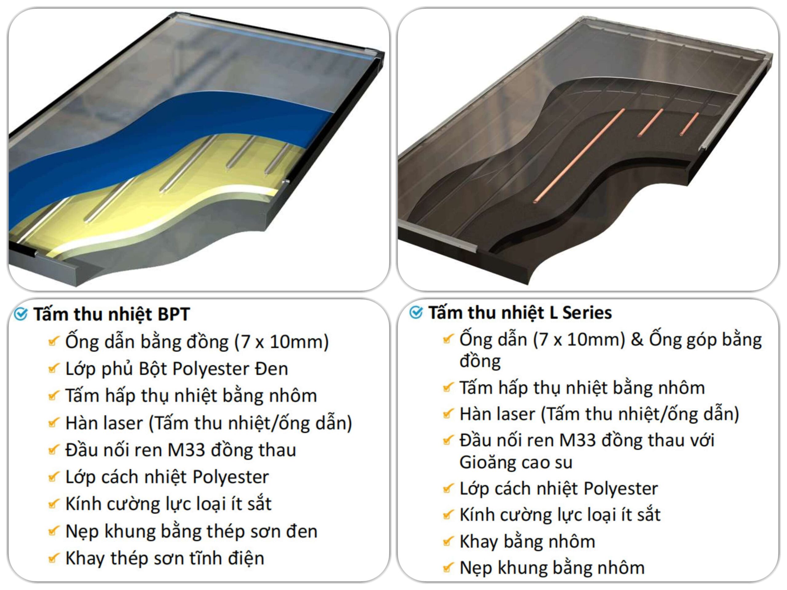 • Tấm L : sử dụng trong thiết kế máy Solahart Premium 180L & 300L