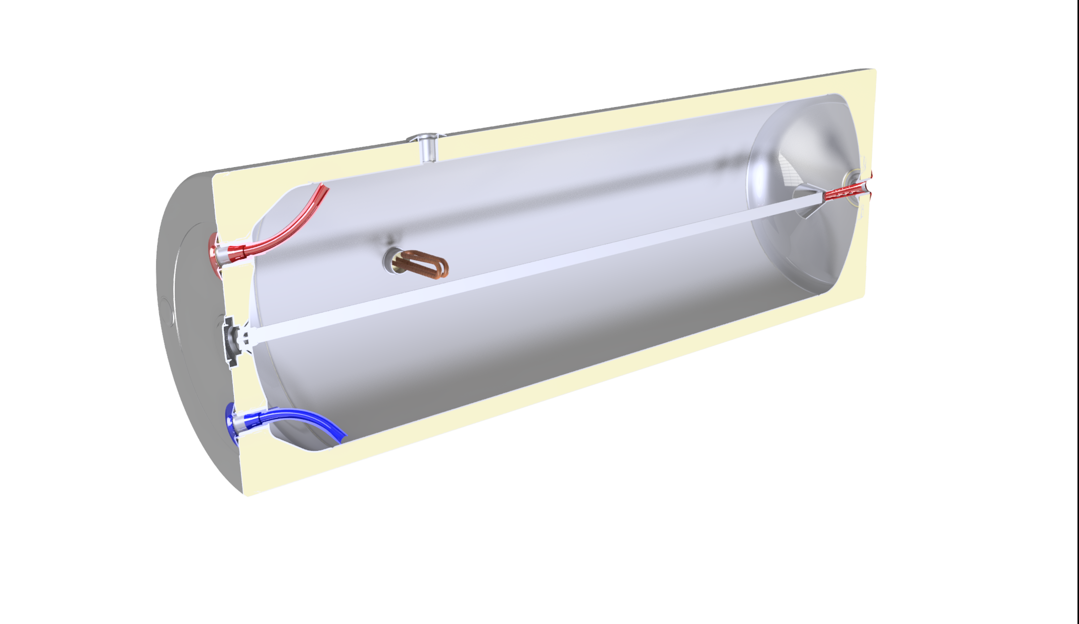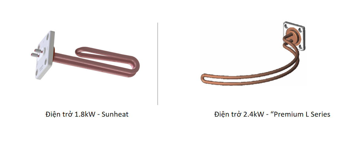 Thanh điện trở được gắn vào bên trong lòng máy hỗ trợ tăng nhiệt độ nước trong trường hợp ánh nắng mặt trời không đủ để hoạt động hiệu quả, hoặc cần nhiều nước nóng cùng lúc.