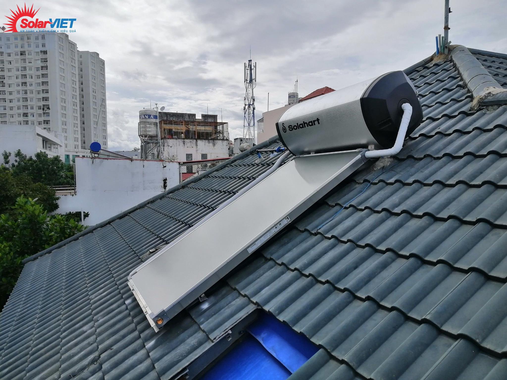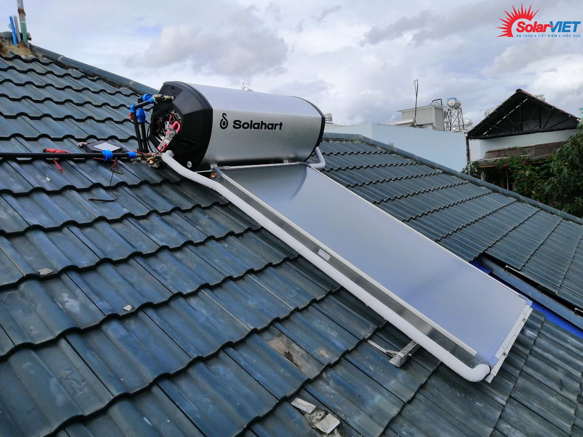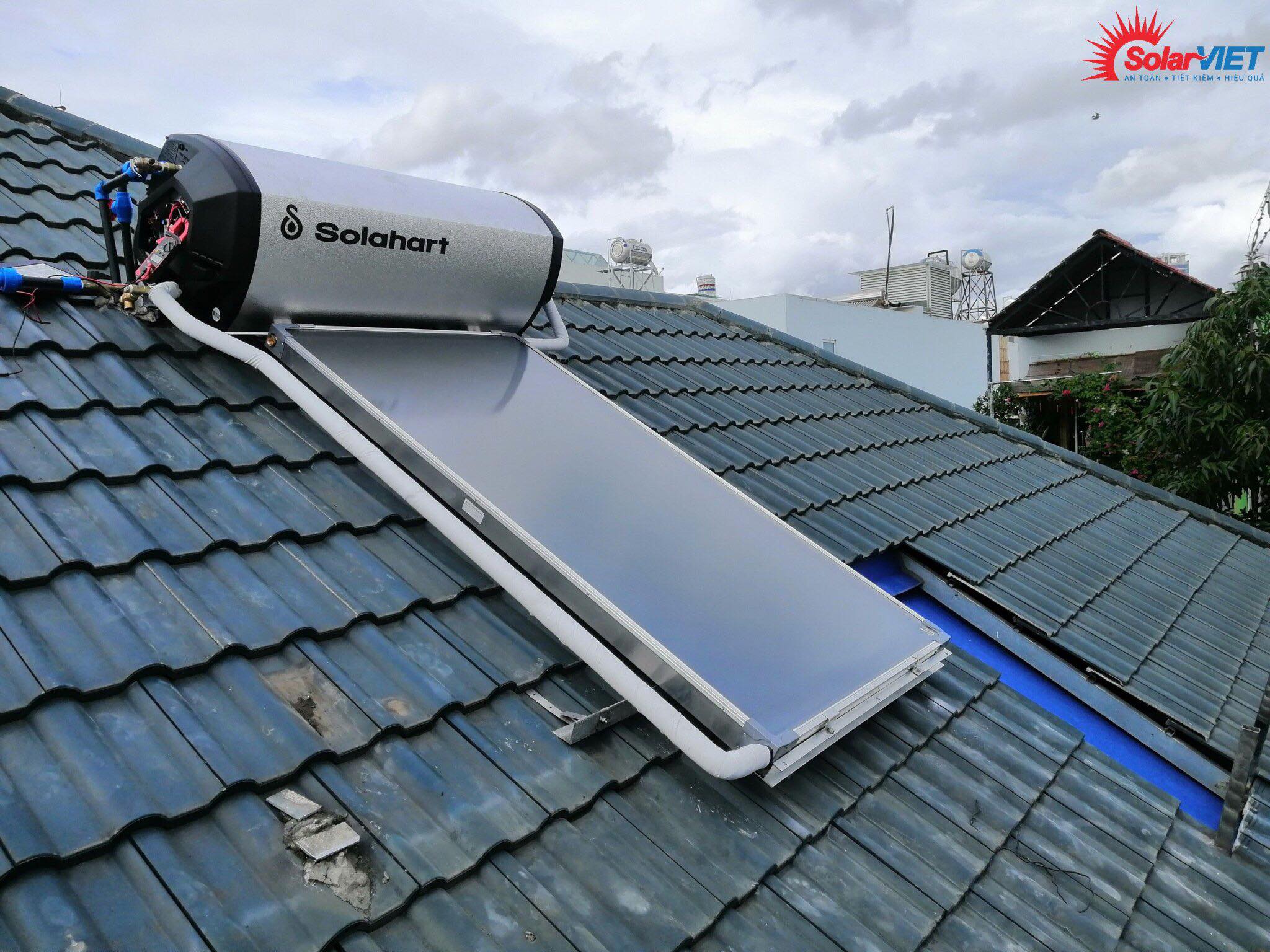 Solahart 180L – máy nước nóng năng lượng mặt trời tấm phẳng của Úc sản phẩm cao cấp lắp trên mái ngói tại Quận 11, TP.HCM.