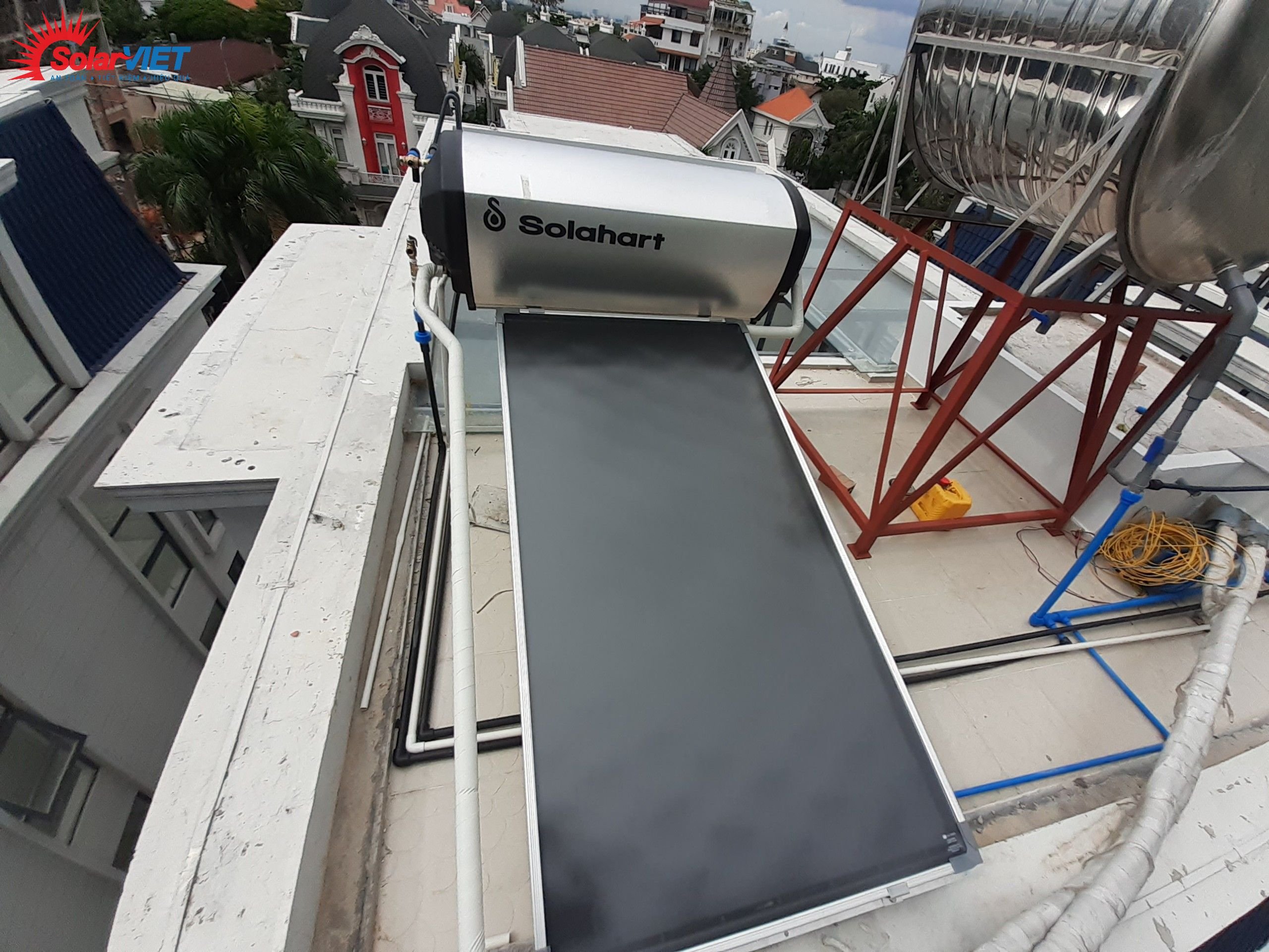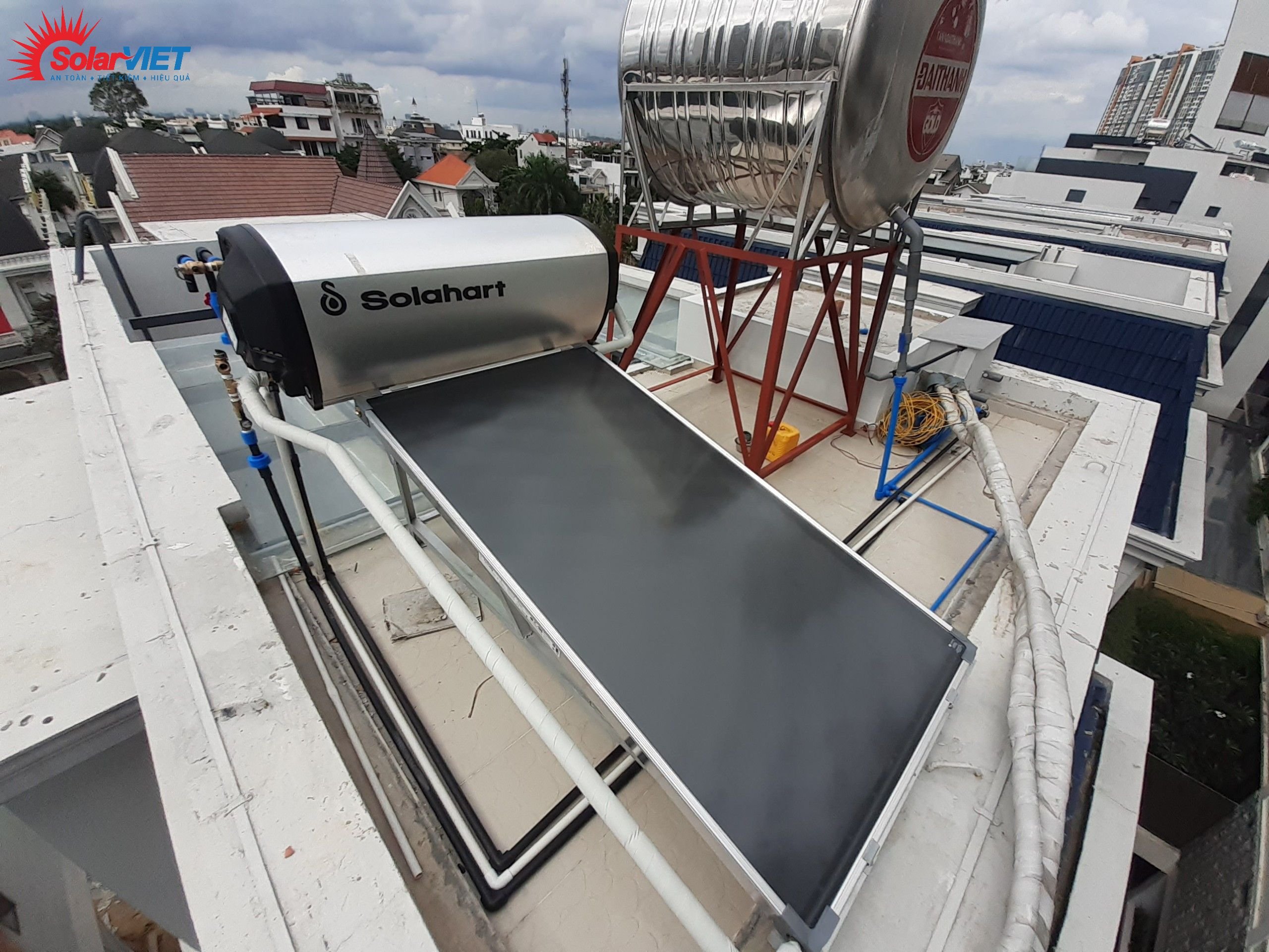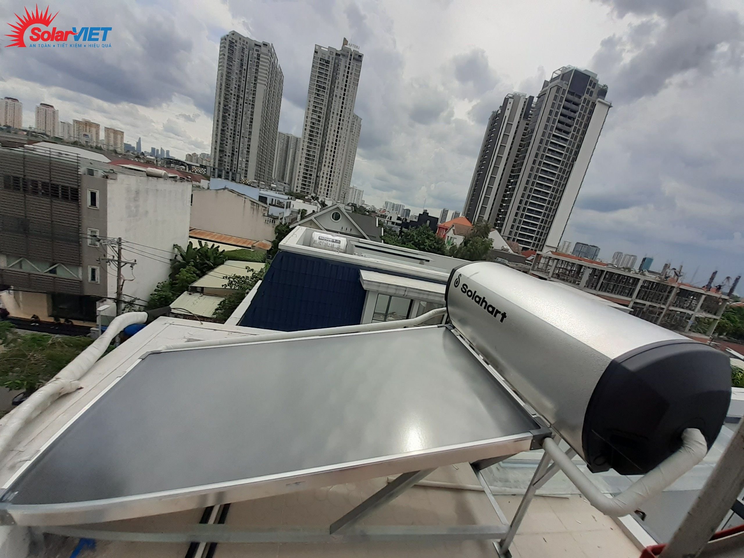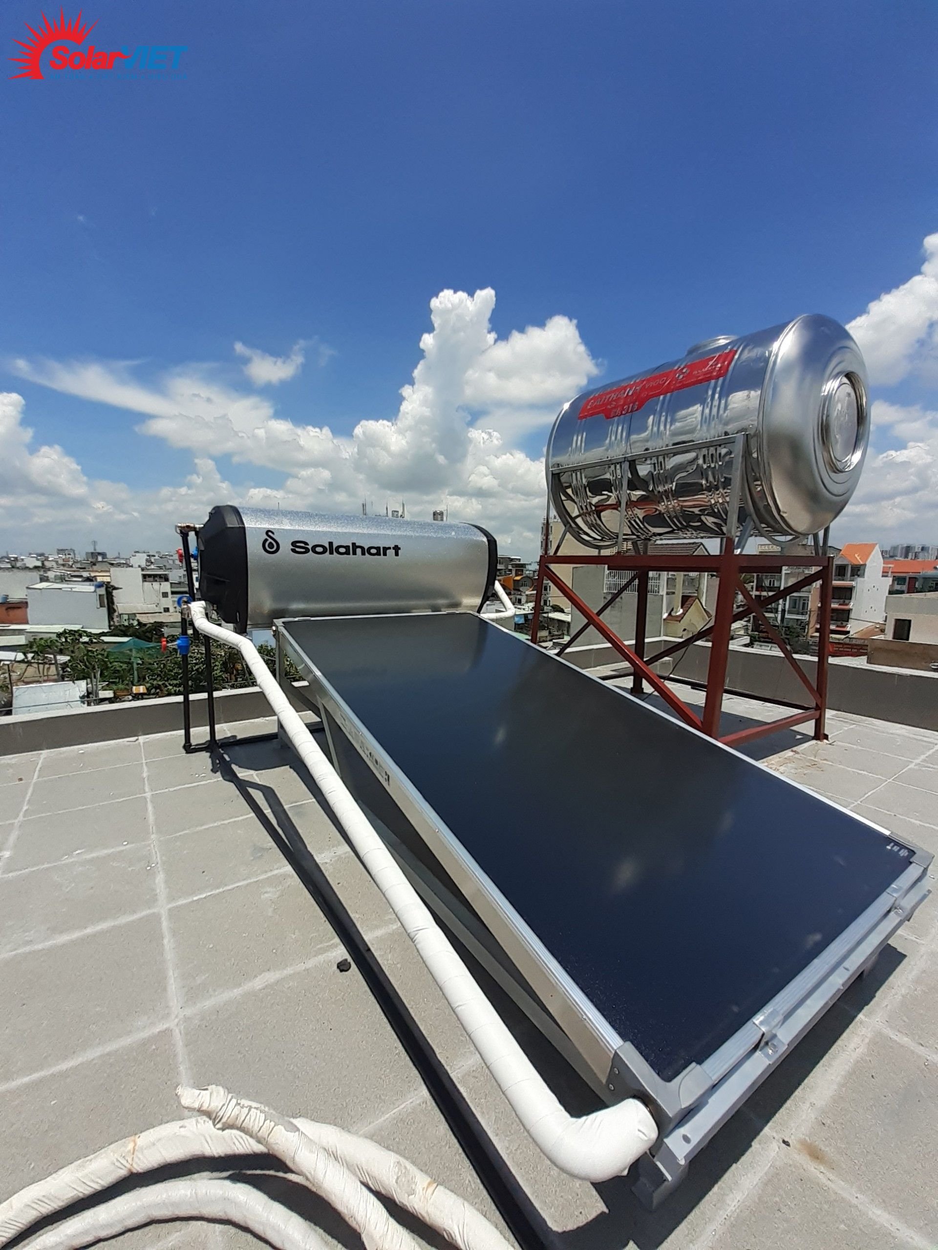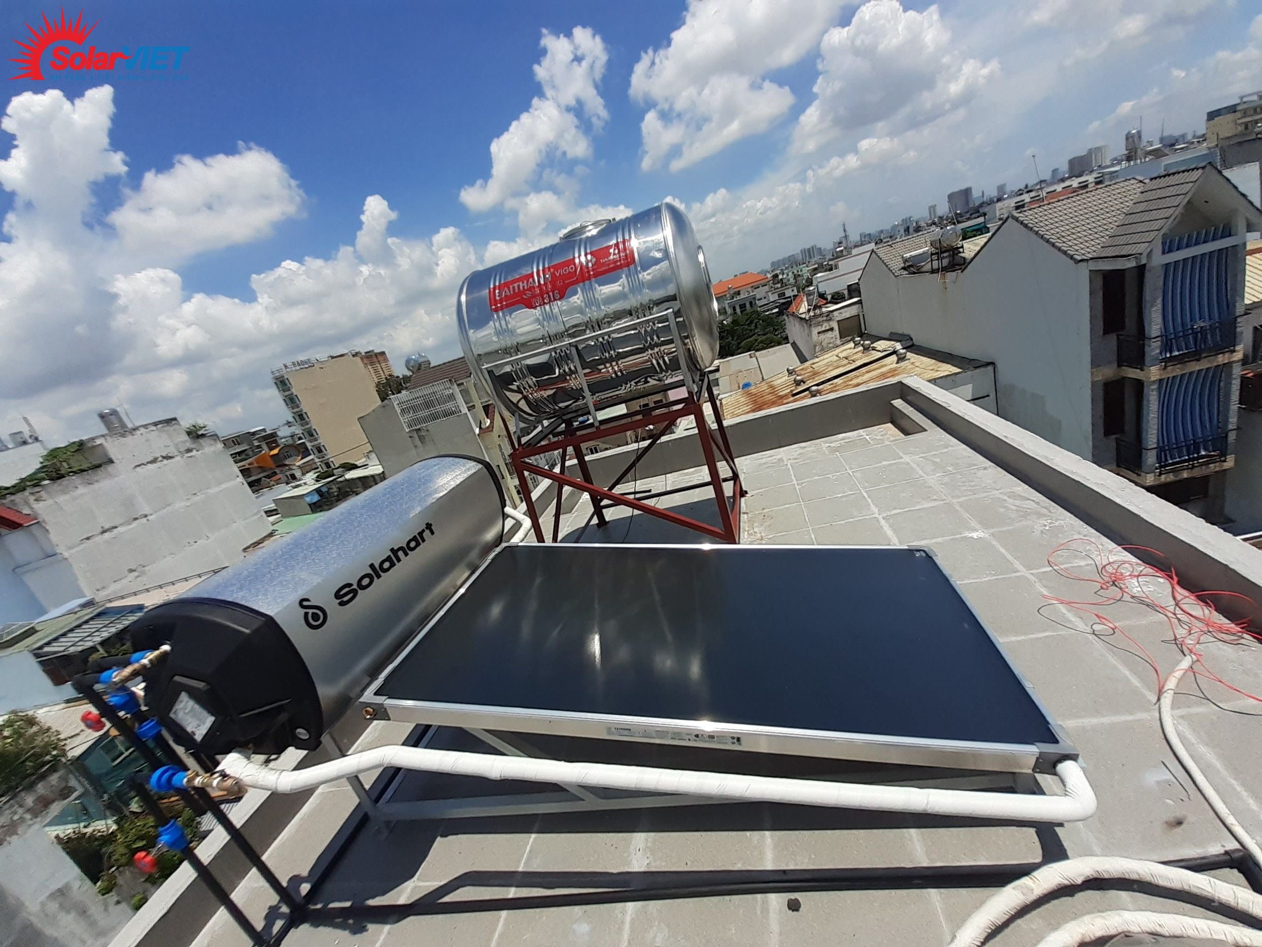 Nước được làm nóng, sẽ nhẹ hơn và nổi lên đi vào bình chứa. Nước lạnh với trọng lượng nặng hơn nằm ở đáy bình tiếp tục được làm nóng. Quá trình hoạt động trên lặp lại liên tục cho tới khi nước nóng đạt được nhiệt độ yêu cầu. Khi tắt ánh nắng mặt trời, hệ thống ngưng hoạt động, nước nóng đã có trong bình chứa và được giữ nóng bởi các lớp cách nhiệt.