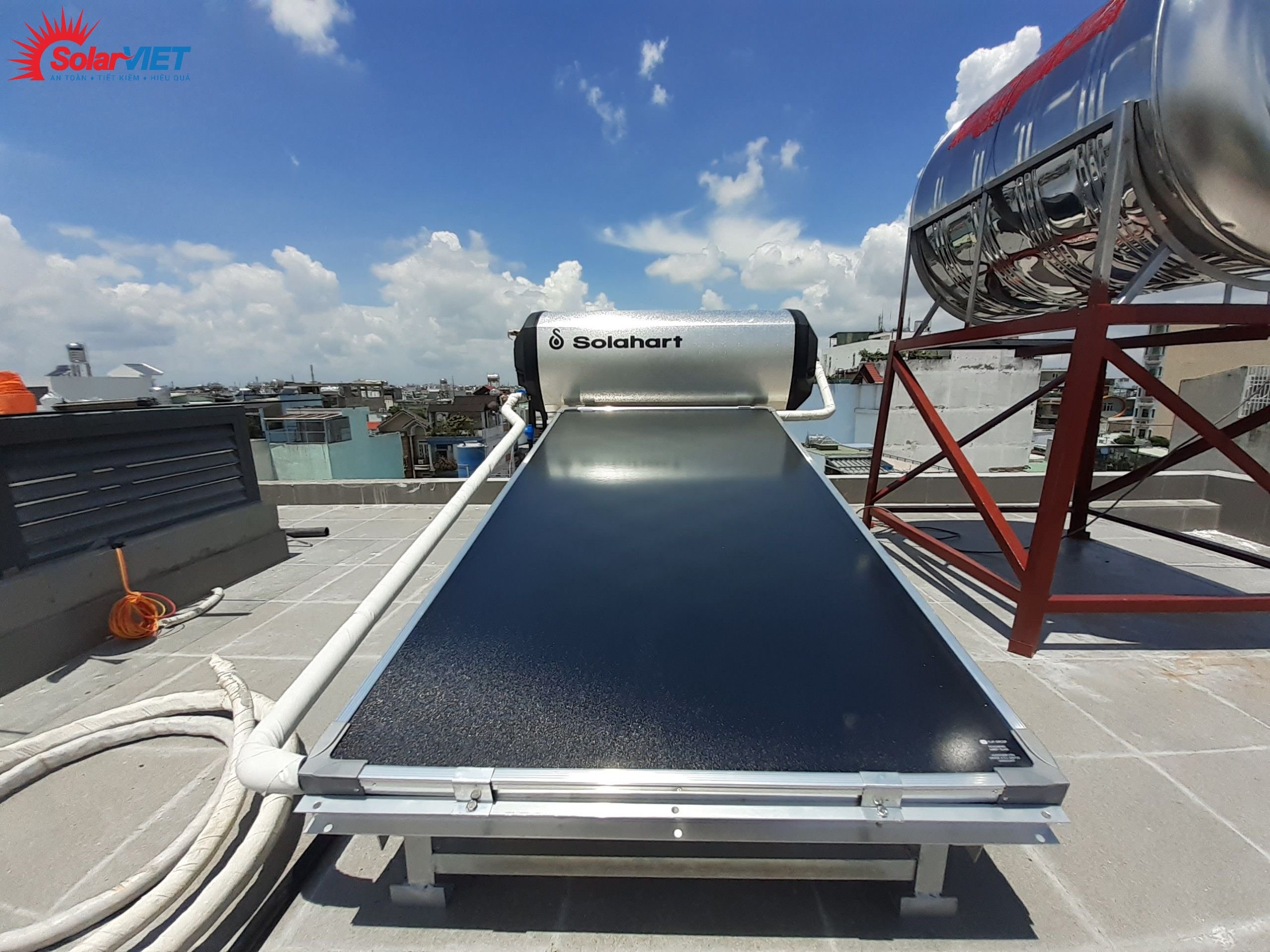 Khi có ánh sáng mặt trời, tấm thu nhiệt hấp thu năng lượng và truyền tải nhiệt vào trong nước. Nước nóng từ kính thu nhiệt chảy về bình chứa và dần thay thế nước lạnh, nhiệt lượng cứ tiếp tục truyền tải vào nước theo chu trình tuần hoàn.